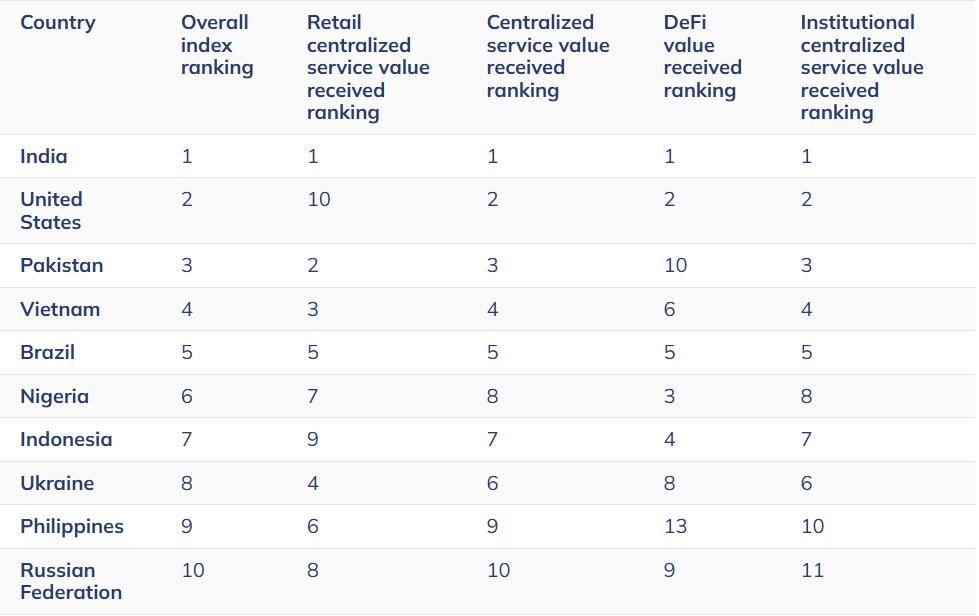 报告进一步指出,印度、美国和巴基斯坦等国家位列前三,其次是越南和巴西,表明这些国家对加密货币的采用率正在不断增长。