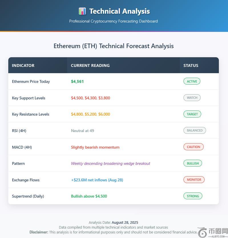 目前,以太坊 2025 年价格预测分析显示,该代币在突破了下降的扩大楔形形态后,目前交易价格约为 4,561 美元。根据技术指标以及以太坊华尔街代币持续增强的势头,以太坊 6,000 美元的目标似乎确实可以实现。