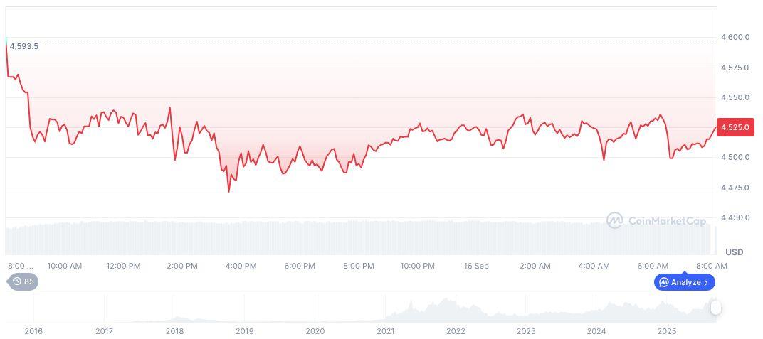 以太坊 (ETH) 日线图,CoinMarketCap 截图,UTC 时间 2025 年 9 月 17 日 02:05。:CoinMarketCap