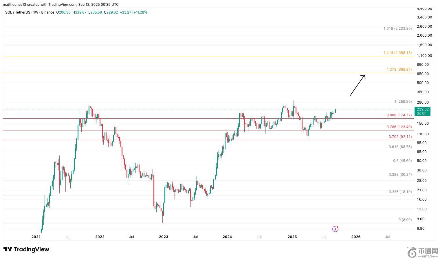 Matt Hughes 绘制的 Solana 周线图
