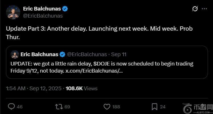 该产品被誉为第一只让投资者直接投资全球最受欢迎的 memecoin 的基金,但该产品已经遭遇了几次延期,彭博社的 Eric Balchunas注意到其发布会已推迟至下周。
