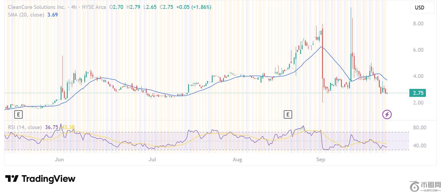CleanCore 股价周二上涨逾 9%,至 2.94 美元,使公司市值超过 4,500 万美元,不过在 FOMC 会议召开前,股价现已回调至较为温和的 2.75 美元。