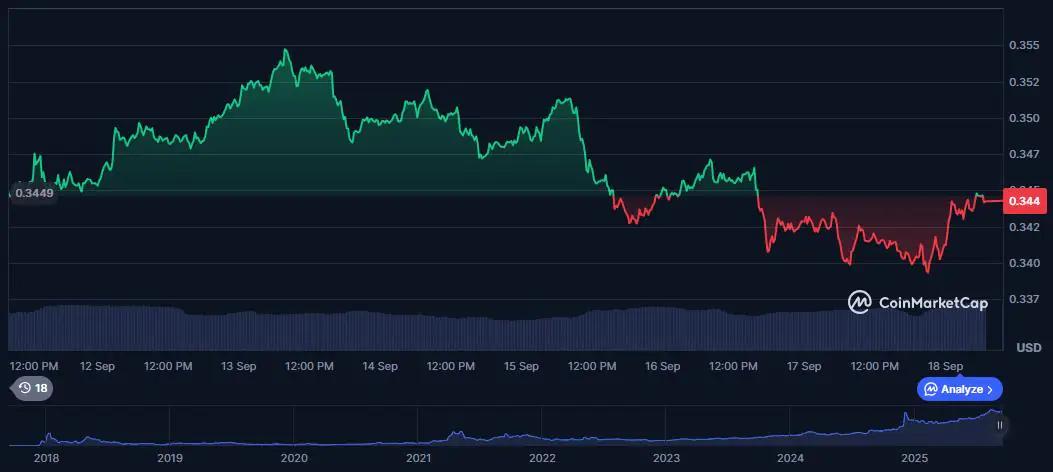 “>区块链自 2017 年推出以来,TRX 已建立起低成本、高速的生态系统,为去中心化应用、智能合约和数字内容货币化奠定了良好的基础。TRX 目前交易价格为 0.34 美元,略低于其九个月高点 0.44 美元。