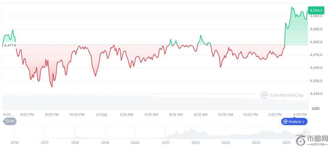 以太坊(ETH)日线图,CoinMarketCap 截图,UTC 时间 2025 年 9 月 21 日 10:05。: CoinMarketCap