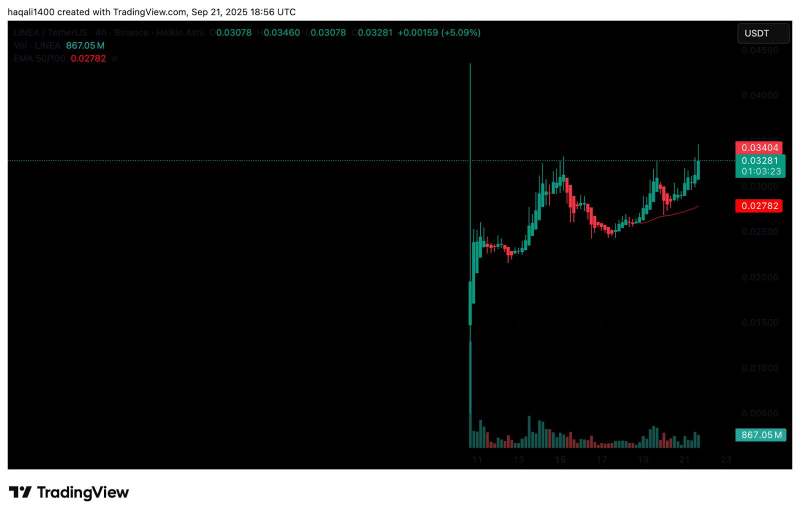 采用率指标也支撑了这一涨势。在 DeFi 领域,LINEA 的使用率正在上升,额外的质押和流动性正在增强网络的运行。