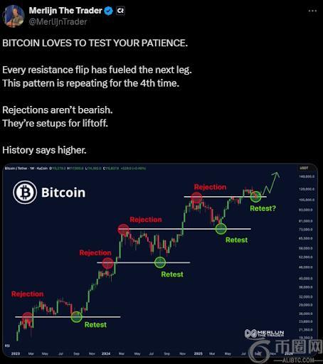 比特币的拒绝并非利空,历史表明,它们预示着上涨 | :MerlijnTrader,X