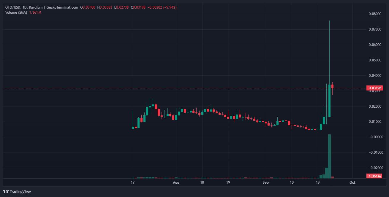 QTO日线图呈现看涨势头。自上周初以来,QTO美元稳步上涨,较9月低点上涨了555%。