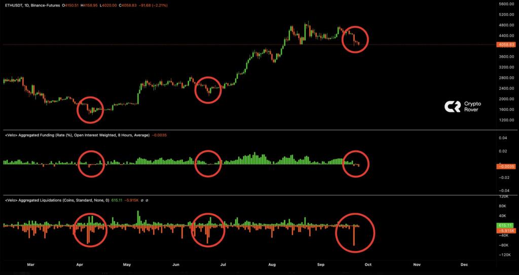 自8月初以来,以太坊价格一直在试图守住4700美元的关键阻力位。遗憾的是,多头未能如愿,导致价格出现强劲回调,涨势逼近重要支撑位。然而,链上数据显示,由于未平仓合约(OI)已转为负值,价格可能已触底。