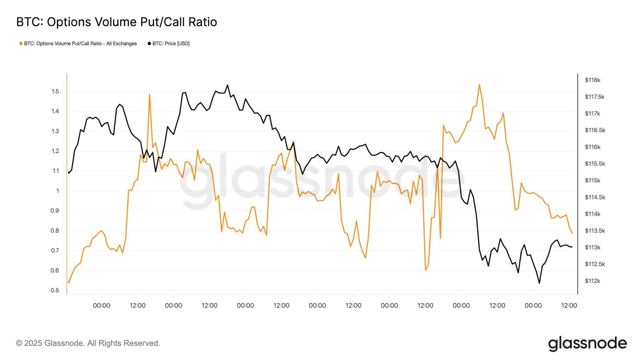 与此同时,此前吸收供应的 ETF 流入已经放缓,造成了脆弱的平衡。现货成交量因强制卖出而激增,期货出现急剧去杠杆,期权市场对下行风险进行定价。这些信号共同表明市场动力正在耗尽,流动性驱动的波动占据主导。