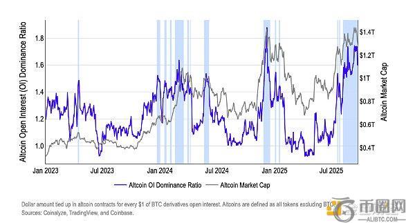 除了宏观因素外,本周加密市场的回落还受到仓位清算压力的影响,这种压力已持续数周,并发出了警示信号。正如我们在之前的文章中提到的,未平仓合约主导率远高于1.4的警戒线,而这一水平通常预示着大规模清算的风险。上周末,该比率一度达到1.7,随后市场出现了约18亿美元的多头仓位被强制平仓的情况,整个市场的多头仓位遭到清洗(图2)。