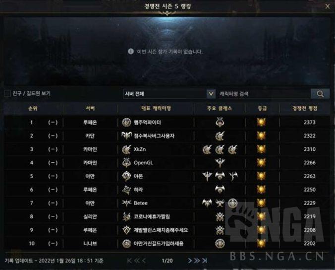 3.排行榜此窗口展示了当前服务器的前 200 名玩家。 所代表的角色可能与他们实际使用的角色不同。 本赛季各职业的胜率见中间栏(排名左侧)。 即使你在前 200 名范围之外,它也会显示你在排行榜上的当前位置。