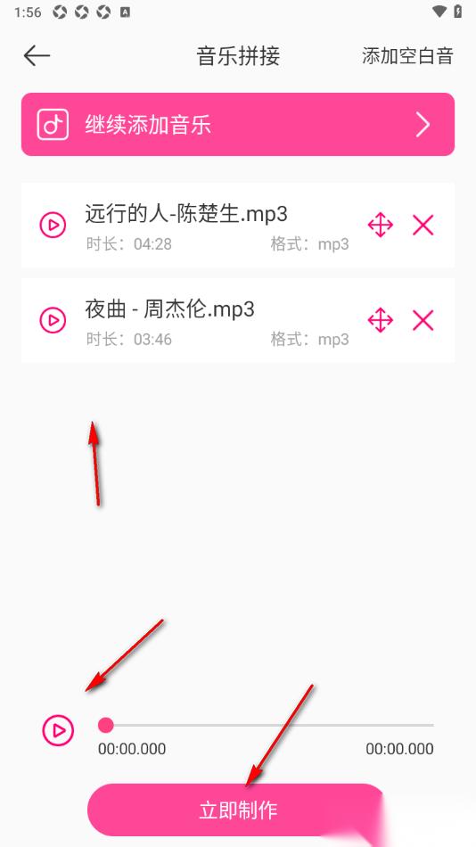 音乐剪辑精灵APP将多个音频拼接在一起的方法
