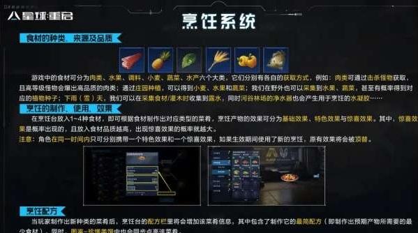 《星球:重启》是一款科幻射击类型游戏游戏,玩家将作为星球的幸存者,探索崩坏失序的世界,收集材料,恢复能源,夺回据点,重启星球的荣光。那么有小伙伴好奇在有游戏中食物制作方法,那么下面就来告诉大家。