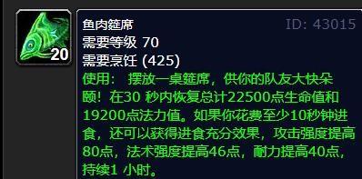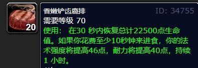 术士食物推荐:鱼肉筵席(大餐),香嫩铲齿鹿排,爆炒鲑鱼,钳鱼大餐,香辣猛犸小吃。