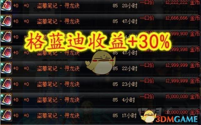 DNF地下城与勇士,最近体验服的改版,格蓝迪和钢铁搬砖图的金币收益全部在图里直接掉落,这就意味着可以通过盗墓笔记寻龙诀来直接增加30%的收益,奸商也开始炒作这件装备的价格,一起来看看吧.