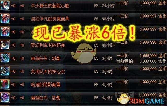 这个传说小编很早就介绍过,那时候和85传说胚子一样的价,而目前拍卖行85传说左槽也就200W不到,黑商真给力啊,不看需求就开始炒作,按照1200W的寻龙诀来计算,搬回传说的成本就得40次格蓝迪,也就是一个多月的时间,而格蓝迪的改版还停留在体验服,11.29实装国服都说不准呢,黑商就炒到了天价,不过大家是时候把85超越巅峰称号拿出来了!