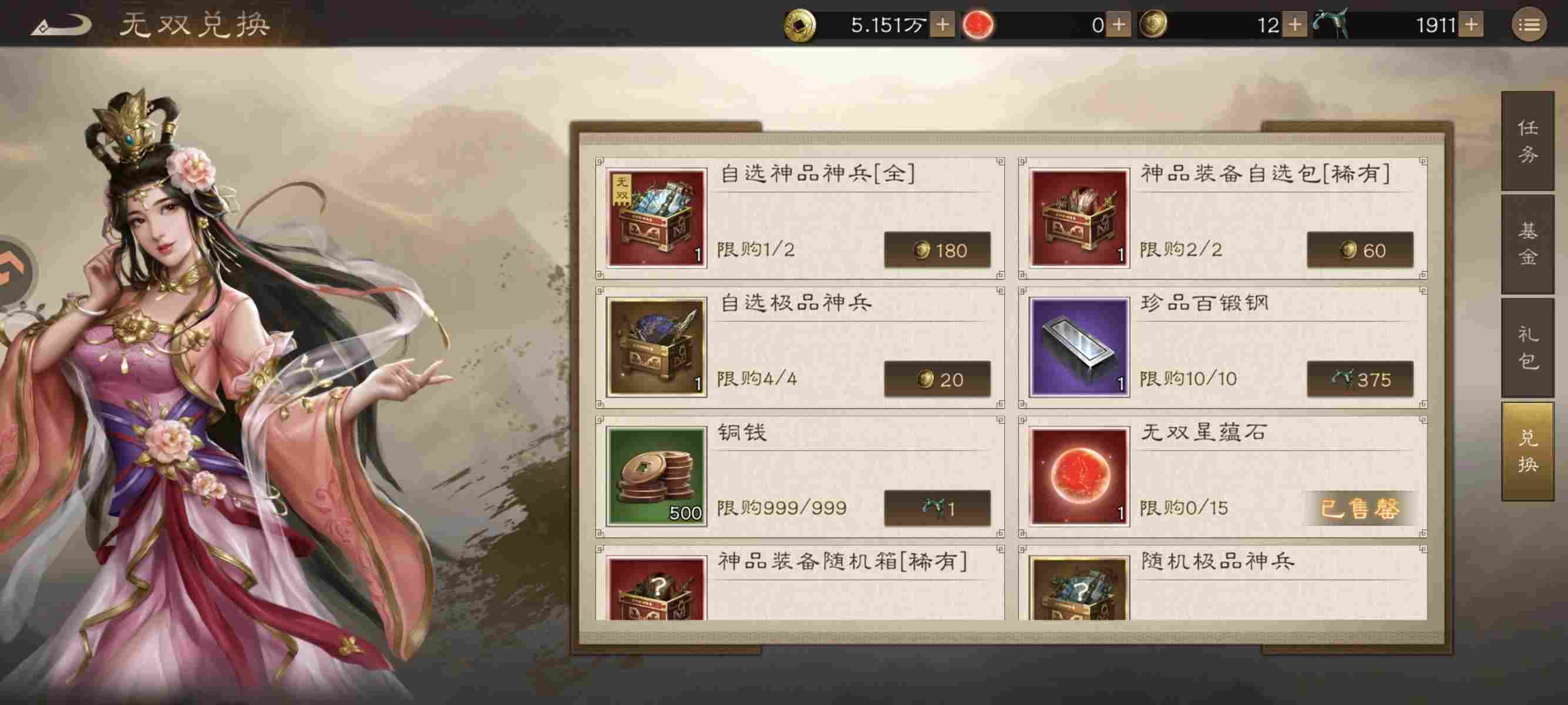 无双币攒着只用来换无双神兵