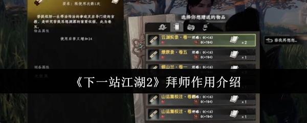 下一站江湖2拜师有什么用?下一站江湖2的拜师系统是玩家快速提升实力的重要途径。很多玩家在刚进入游戏时,对拜师的作用并不清楚,其实这一机制不仅能让玩家获得强大的技能,还能深入体验游戏中的江湖文化。通过拜师,玩家可以接触到门派中的高手,学习到独特的武学技巧,从而在战斗中占据优势。同时,拜师也是了解游戏世界观的一种方式,让玩家感受到武侠世界的魅力。