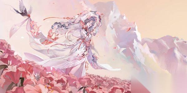 三、角色设计生于高寒的极境之地,却能在风雪的磨砺下愈发热烈地绽放,遍染高山。从杜鹃汲取灵感,结合新中式风格和昭君的外观特征展开设计。以彩墨勾勒描绘植物线条,通过流麻展现植物被风吹下的动态效果,糅合大量琉璃般半透材质,诠释轻盈淡雅之感。