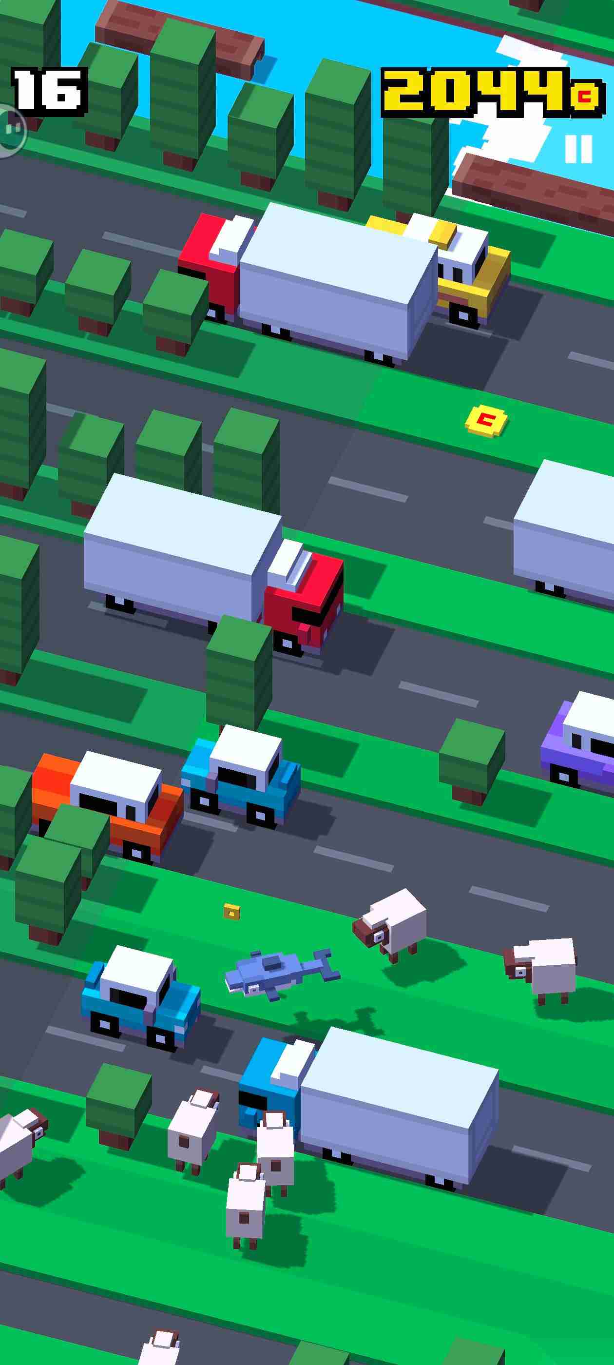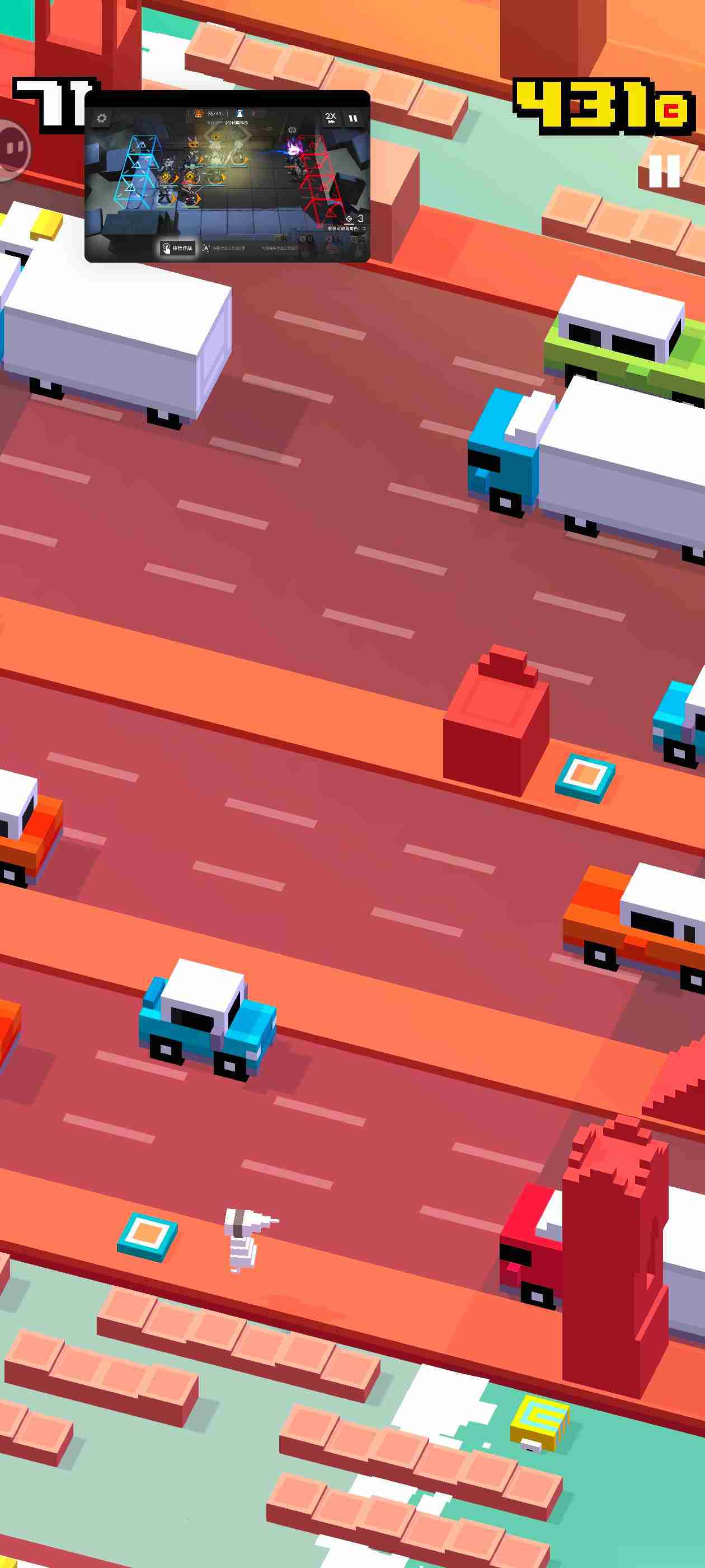 使用角色【皮皮】在路边遇见华夫,华夫会消失,然后获得(路边紫色的猪不会消失,是障碍物,但华夫会)
