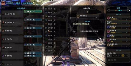 装备技能:攻击4,匠4,弱点特效3,精神抖擞3,超会心2,刚刃研磨1,无属性强化1。