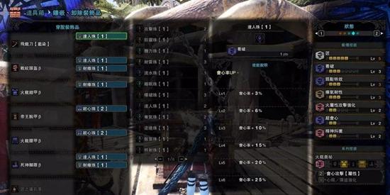装备技能:匠5,看破3,弱点特效3,瘴气耐性3,火属性攻击强化2,超会心2,精神抖擞2。
