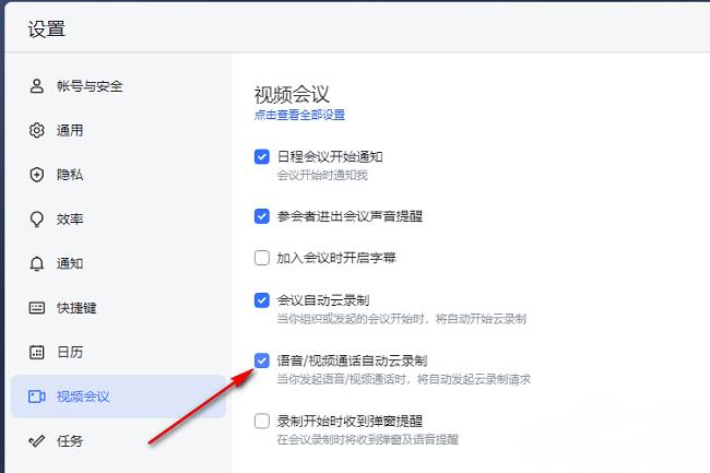 飞书怎么设置自动录制语音视频通话
