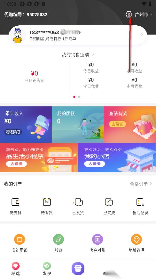 1.在手机上将唯代购APP点击打开,在当前打开的页面下方的位置找到我的选项,将其点击打开。