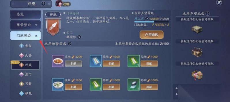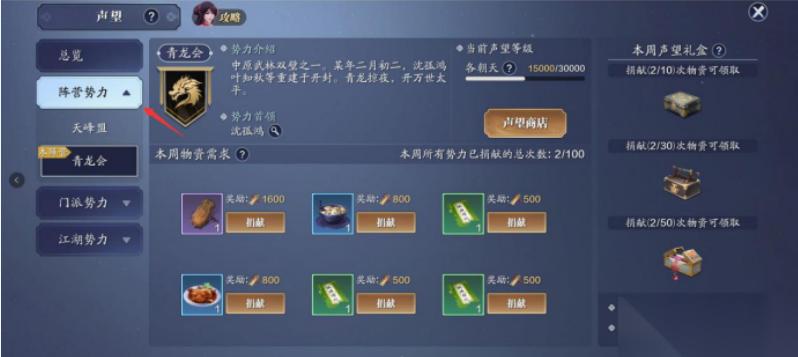3、声望商店——奖励道具的兑换方式及种类