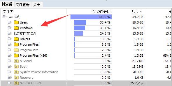 3、点击"树查看"选项卡,即可查看文件以及文件夹的具体占用情况。
