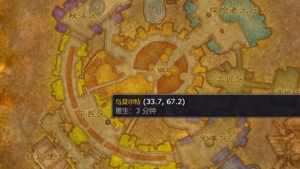 2、联盟玩家可以前往铁炉堡的平民区,在坐标(33.7,67.2)的位置,找乌莫尔特购买。