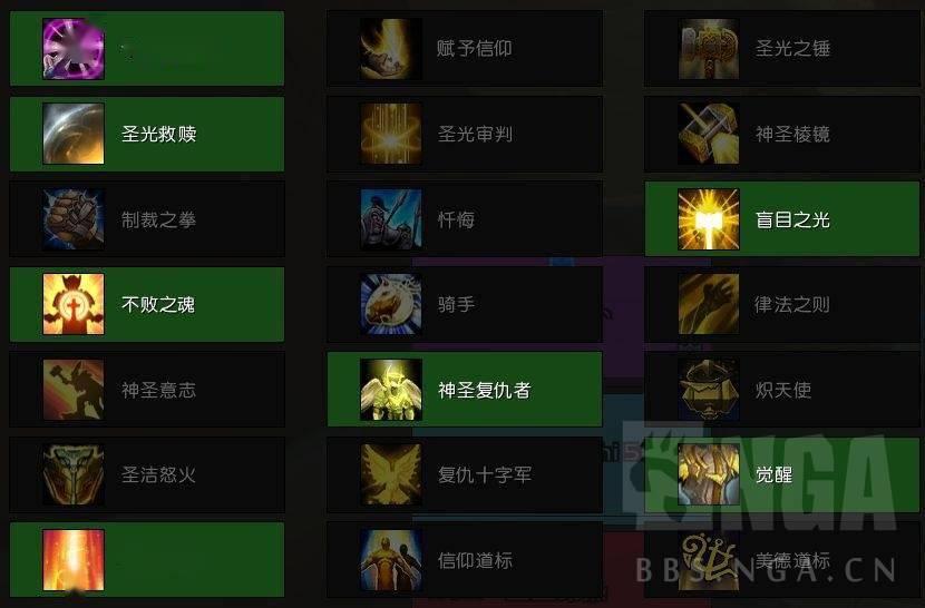 第三层选择盲目之光,制裁之拳也可以点但是不太灵活,忏悔emmmm现在根本用不到,盲目之光是大米的神技,可以提供关键的打断以及控制。