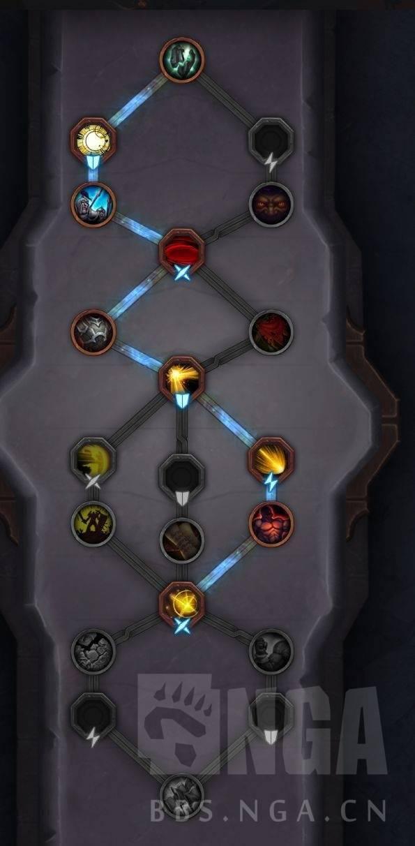 第五层选择神圣复仇者,这一层是比较有争议的一层,在傲慢时期非常需要复仇者带来的buff去抬血,但是傲慢已经是过去式了,新的折磨怪对于抬血的压力并不高,一个翅膀就足以应付了,所以如果是懒人可以选择神圣意志,但是我个人更倾向于使用复仇者去打伤害。由于温西尔奶骑本身就比较缺乏豆子所以炽天使是几乎不可能选择的。