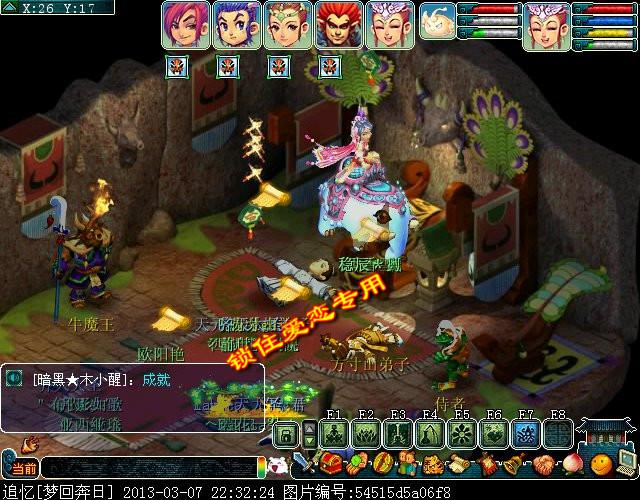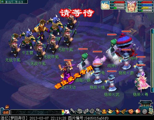 点牛魔王对话。对话完后点抢亲劫匪开杀。需要杀2个,难度较低,有封系的话可以先把小混混封了,本次爱恋带有一个WZ所以直接封小混混。杀完2场之后同样是奖励300672经验,12006钱,18点神器积分。