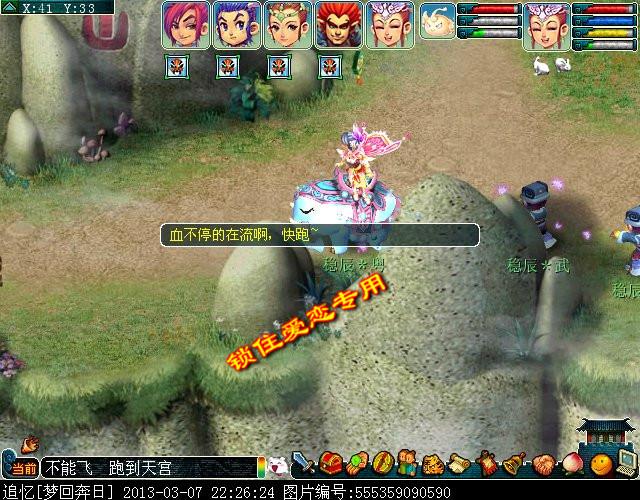 然后前往FC山将事情告诉菩提祖师。菩提祖师会让你去TG找太山老君,这里不能用飞行FF、飞行旗之类的东西。只能跑着去 ,一边跑一边掉血上限。要在气血上限扣除到零之前到达天宫,找太上老君求药!(血不停的在流啊,快跑~