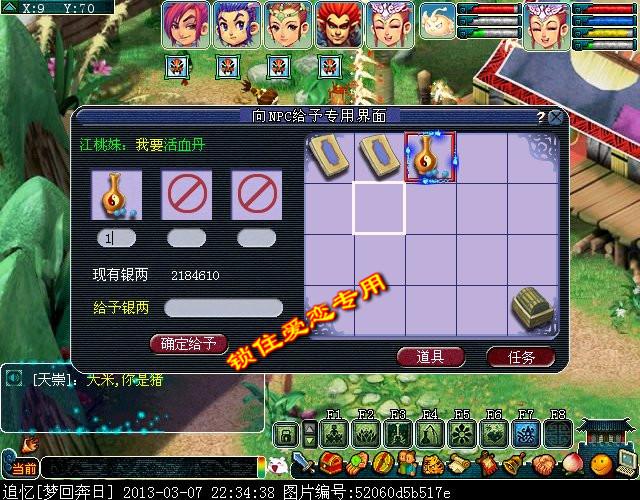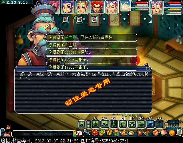 给予他,得到活血丹。300672经验,12006金钱,17250金钱,18点神器积分。