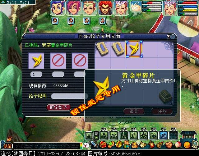 找到坐标,提示获得黄金甲碎片。