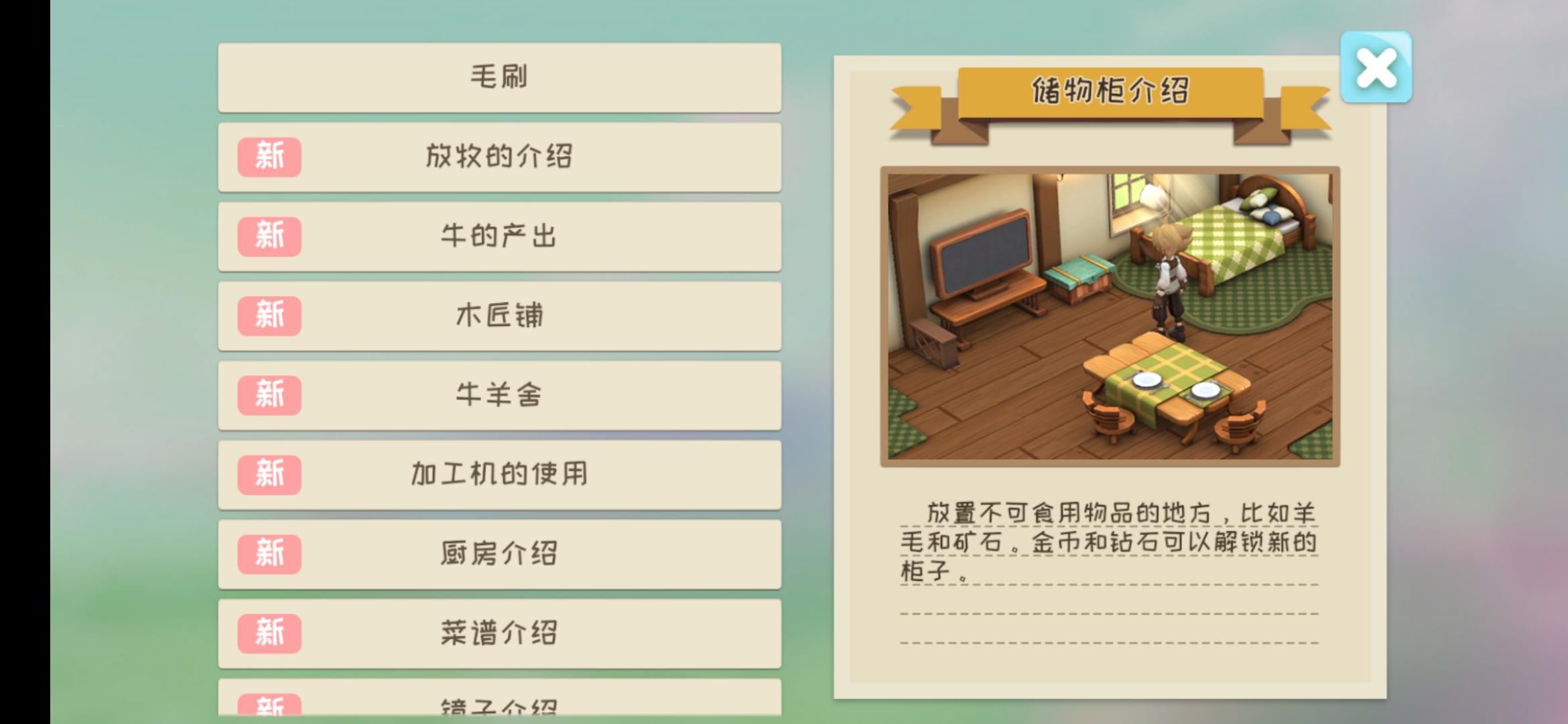 电视机:可看节目、天气预报、每天三次玩小游戏(全对给宝石和种子,对两个给宝石,其他情况给金币)