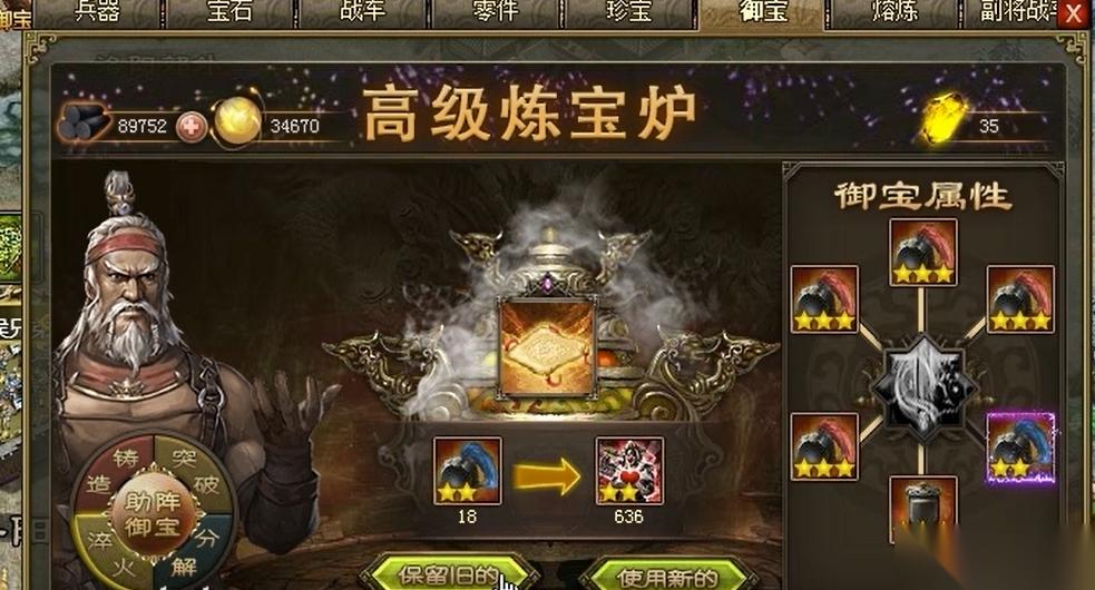 紫色御宝可通过淬火获得额外属性加成,攻击、防御、血量三类属性收益最高。淬火需消耗精粹材料,白色御宝分解得30精粹,蓝色60精粹,绿色150精粹,黄色御宝分解收益更高。淬火属性继承存在随机性,建议提前规划保留高数值属性。红宝可作为紫宝淬火的引子材料抵扣2000金币,但需权衡资源消耗与战力提升的性价比。参与古城探宝、盛世共襄等活动可补充稀有材料,世界建造和贸易车队也是稳定获取渠道。炼宝炉系统需与武将培养、国战策略深度结合。攻击型宝物适合甘宁、关羽等高爆发武将,防御型宝物则适配典韦、夏侯惇等坦克角色。