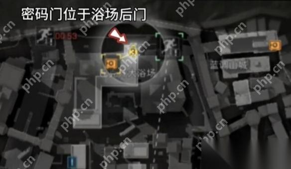 该密码门隐藏在地图右上角的浴场内部,建议与队友协作前往以确保安全。