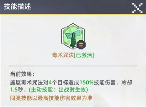 作为基础主动技,毒术咒法直接定调输出风格:对 4 目标造成 150% 技能伤害,仅 1.5 秒冷却! 高频次群体打击,清小怪、前期压血线效率爆炸,搭配 “同类技能取最高伤害” 规则,可无缝衔接其他高伤主动技,持续泼洒 “财富式” 火力覆盖。
