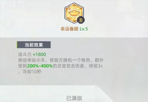 想体验 “财富暴击”?幸运眷顾满足你:敌方随机单体吃 200%-400% 灵宠攻击伤害(持续 3 秒),10 秒冷却暗藏惊喜! 敌方治疗、增益辅助残血时,赌一手 400% 倍率直接斩杀;世界 BOSS 单体阶段,配合团队集火补伤害,残血收割如同 “提款机吐钞”,精准又刺激。