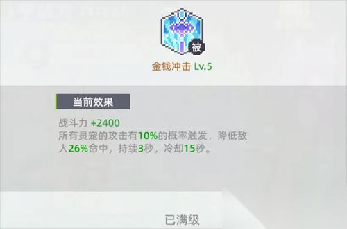 别小瞧被动金钱冲击!灵宠攻击 10% 概率触发,降敌人 26% 命中(持续 3 秒),15 秒冷却持续干扰战局。 PVP 针对依赖连招的对手,多次触发让其技能疯狂 MISS;PVE 打高攻速 BOSS,叠加触发变相提升生存,搭配减伤体系,把 “理财防御” 拉满,让敌人输出如同 “花钱打水漂”。