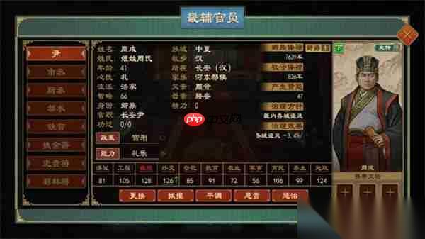 畿辅可任命多种官员,不同职位为辖下城池提供独特增益: