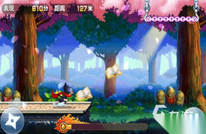 忍者跑酷主打的是横版跑酷玩法,进入游戏之后,玩家将会化身成为忍者,将会在一个横屏丛林场景中不断前进,在前进的过程中会有大量断裂的道路,需要通过点击跳跃的方式,让忍者可以躲避障碍,在这个过程中还会遇到大量的对手,玩家需要操控忍者发射飞镖,击败这些对手之后才能继续前进,整体的玩法比较简单,喜欢跑酷的玩家可以尝试一下游戏。