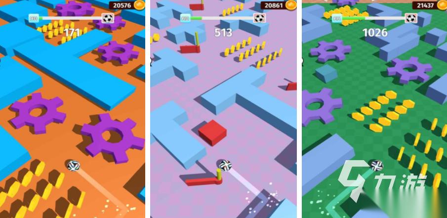 在会跑酷的足球这个游戏里,玩家需要做的就是操控一只足球,不断躲避场景里的障碍,整个场景里会有很多立体的机关,也会有很多金币,需要灵活控制足球躲避场景里的机关,除了收集所有的金币之外,还需要带领足球离开场景,这样才能赢得最终的胜利,每一个关卡中,场景都非常多变,需要灵活控制足球,这样才能顺利逃离场景,关卡里收集到的金币可以购买皮肤,让足球在闯关的过程中能有不同的外观呈现。