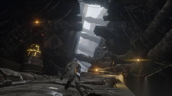 《SAROS》的舞台设定在不断变化的外星球 Carcosa。玩家每次死亡后,星球都会随之改变,带来全新的环境与敌人。主角 Arjun Devraj(由Rahul Kohli饰演)将在这里展开冒险,并与关键角色Nitya Chandran(Shunori Ramanthan饰演)相遇。演示展示了失落古文明遗迹与神秘日蚀背景下的探索场景。