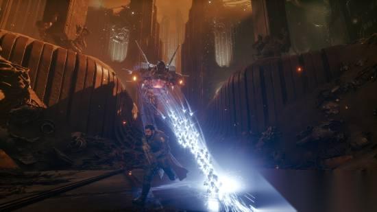 在叙事方面,《SAROS》不仅有高质量配音、过场动画与NPC互动,还设计了 Soltari全像投影,帮助玩家逐步揭开Carcosa的历史。新加入的 “Second Chance”能力 允许玩家在首次死亡后借助日蚀能量复活,形成永久成长系统的一部分,让每次游玩都更具进化感。