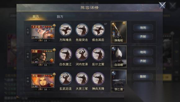 太史慈还有一个法刀队也很出色,这个队伍需要搭配吕蒙和周瑜。跟sp太史慈搭配的队伍差不多,但是战法要变通一下。最好是选择先驱突击和疾击其搭配给太史慈,确保控制效果发挥完美,其他两个人的战法可以变也可以不变,反正主要是给队伍提供增伤。