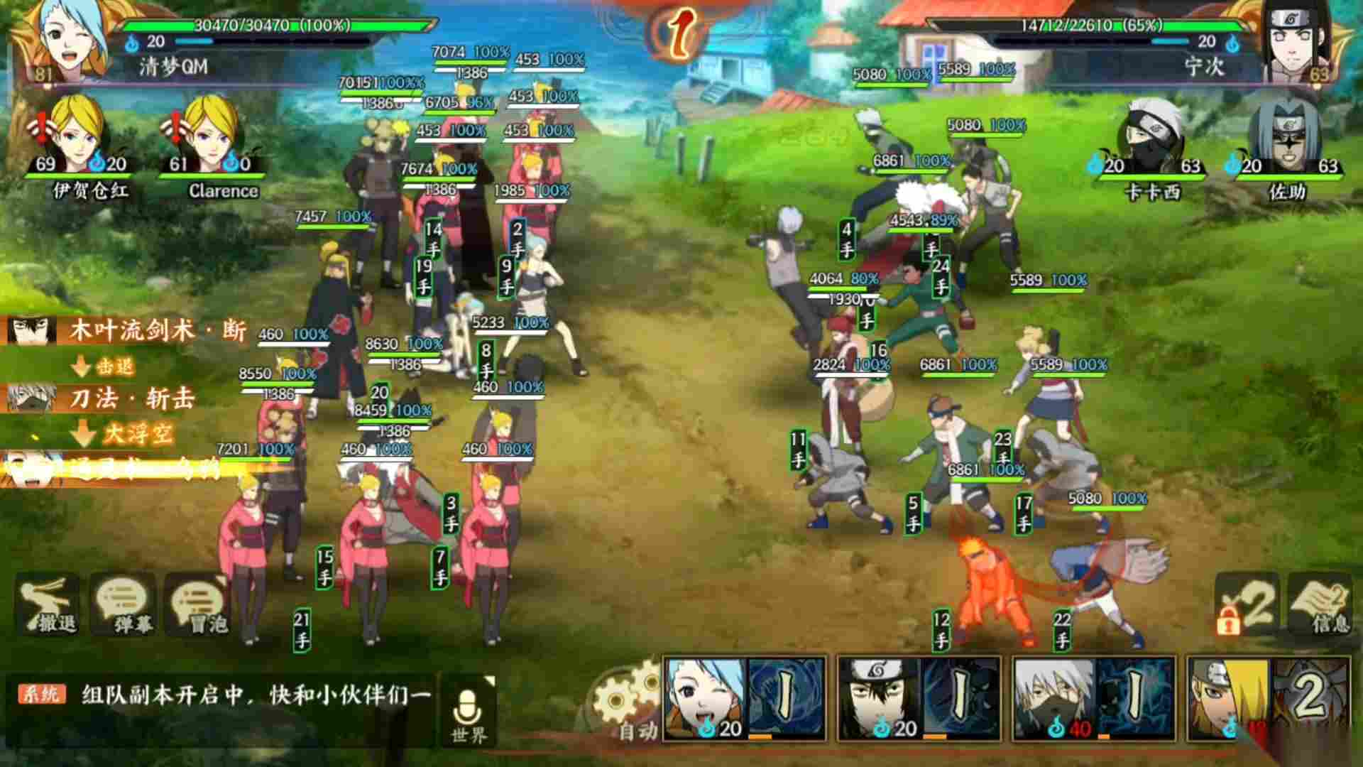 这套阵容的核心优势是高频追打,标准连招为:手鞠普攻起手→"风遁・镰鼬" 造成小浮空→接李的 "木叶旋风" 倒地追击→鸣人 "螺旋丸" 再次浮空→最后风主 "风遁・真空波" 大浮空收尾。全程控制敌人无法反击,输出拉满。